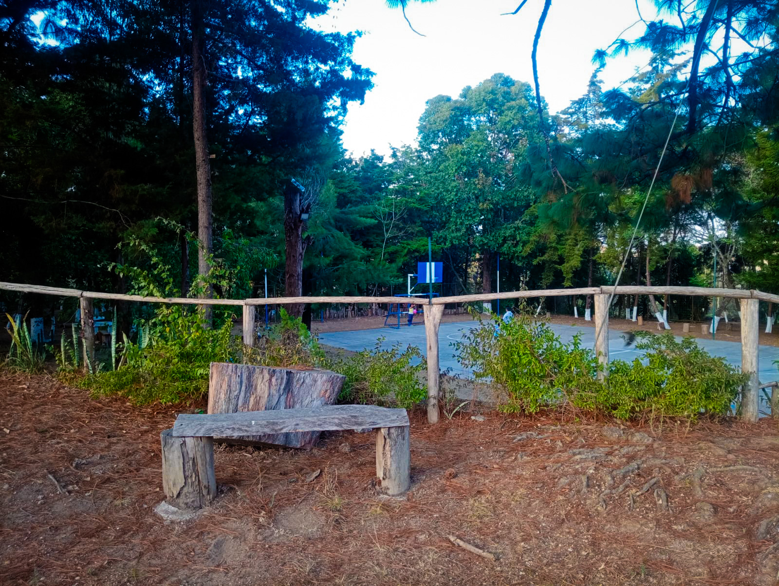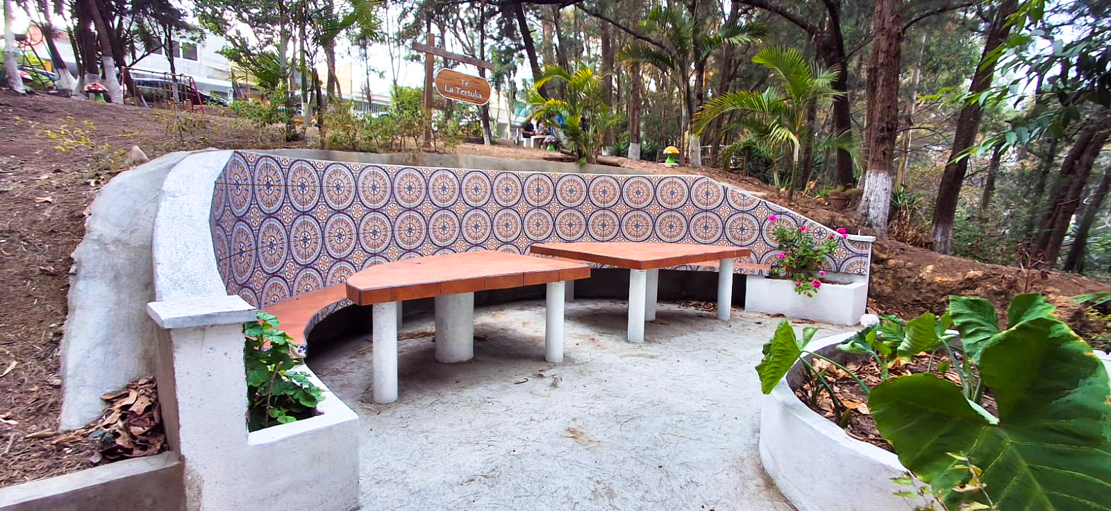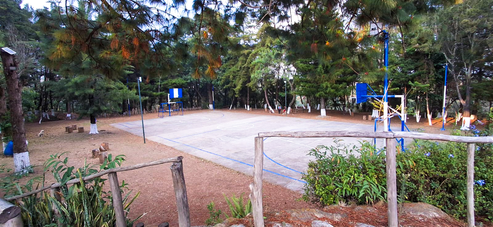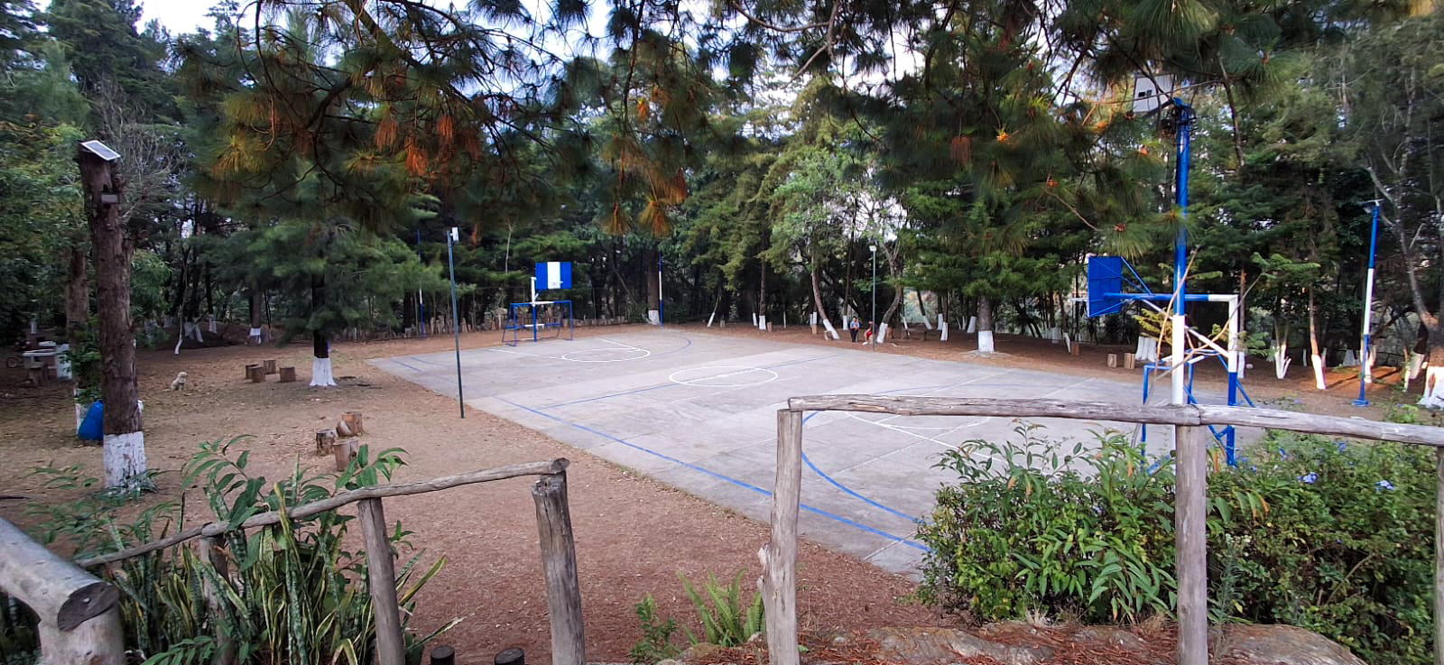 - Está techada con láminas transparentes para dejar pasar luz natural.